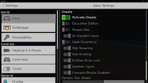 Learn how to use these powerful cheats and cheat commands in Minecraft on PC, Xbox, and other platforms. Exit the menu, and cheats will be enabled. If you enable cheats on Minecraft: Windows 10 Edition or Xbox One, players connected to your world will not be able to earn Xbox achievements...